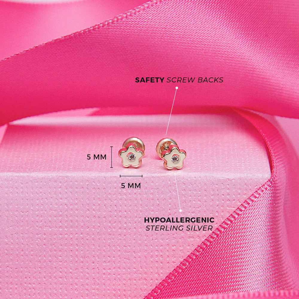 - Earrings Size: 5mm flower, (clear) cubic zirconia; 7mm threaded earring post