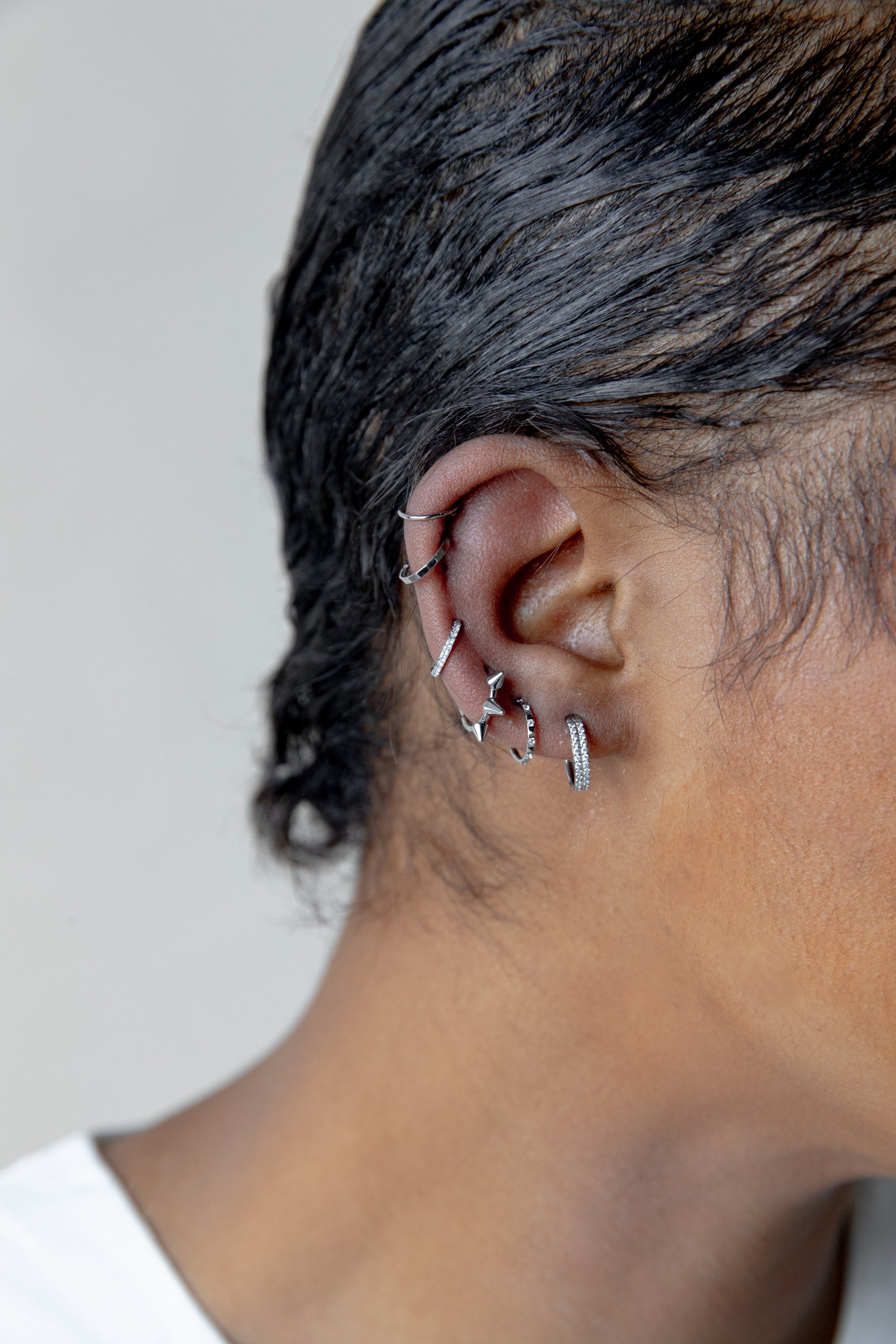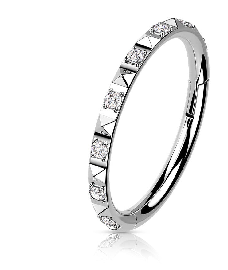 MATERIAL: Titanium; Implant-grade, hypoallergenic. Suitable for those who have skin sensitivities or whose skin is easily reactive to certain metals or nickel. STONE: CZ HOOP THICKNESS: 16G EAR PIERCING CLOSURE SYSTEM: Seamless hoop