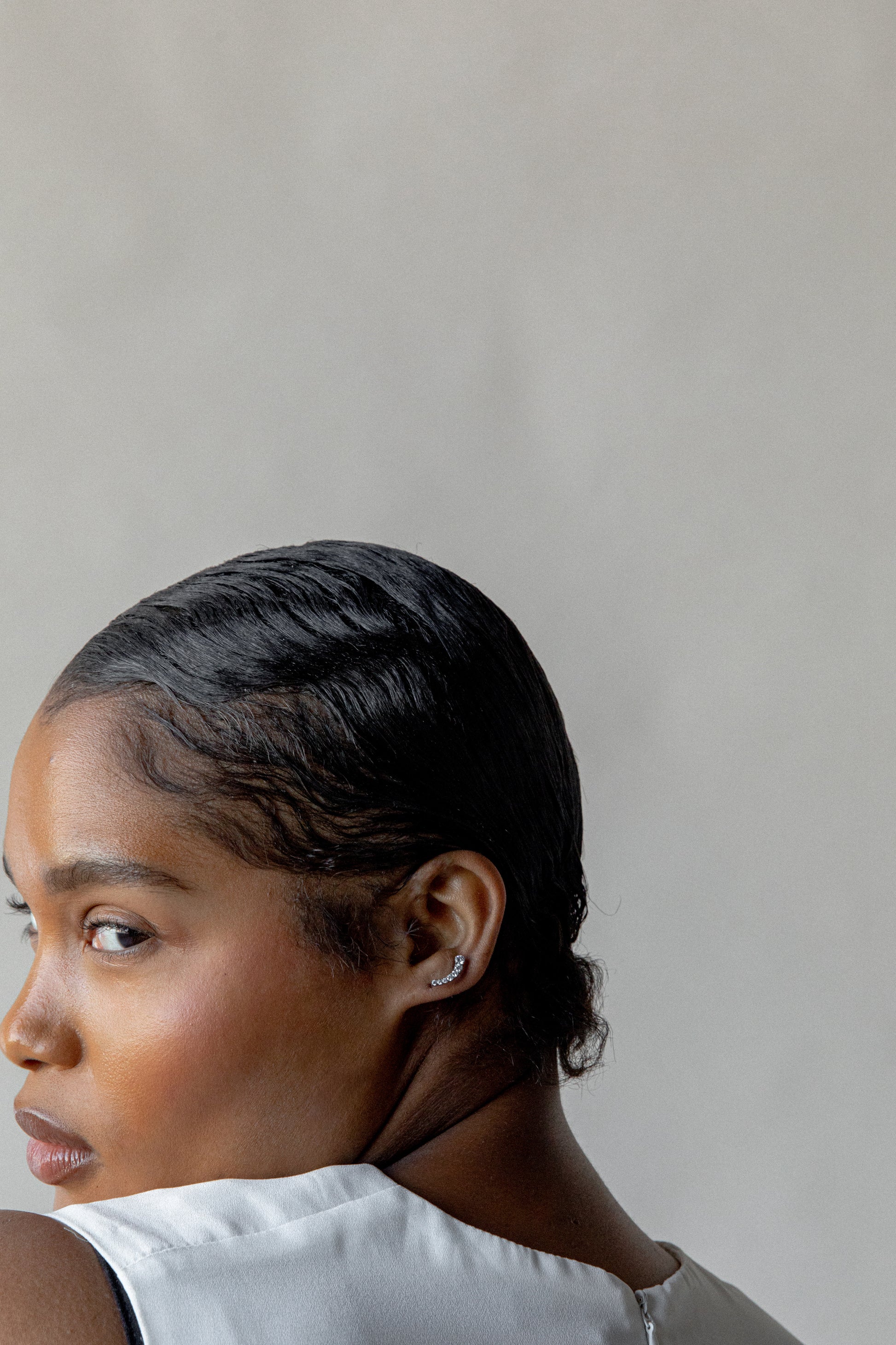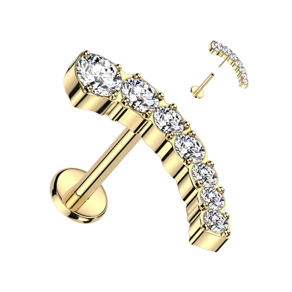 MATERIAL: Titanium; Implant-grade, hypoallergenic. Suitable for those who have skin sensitivities or whose skin is easily reactive to certain metals or nickel. STONE: CZ NUMBER OF STONES: 7 BALL SIZE: 10mm EAR PIERCING CLOSURE SYSTEM: Flatback threadless backing, long post (8mm) shorter post (6mm)