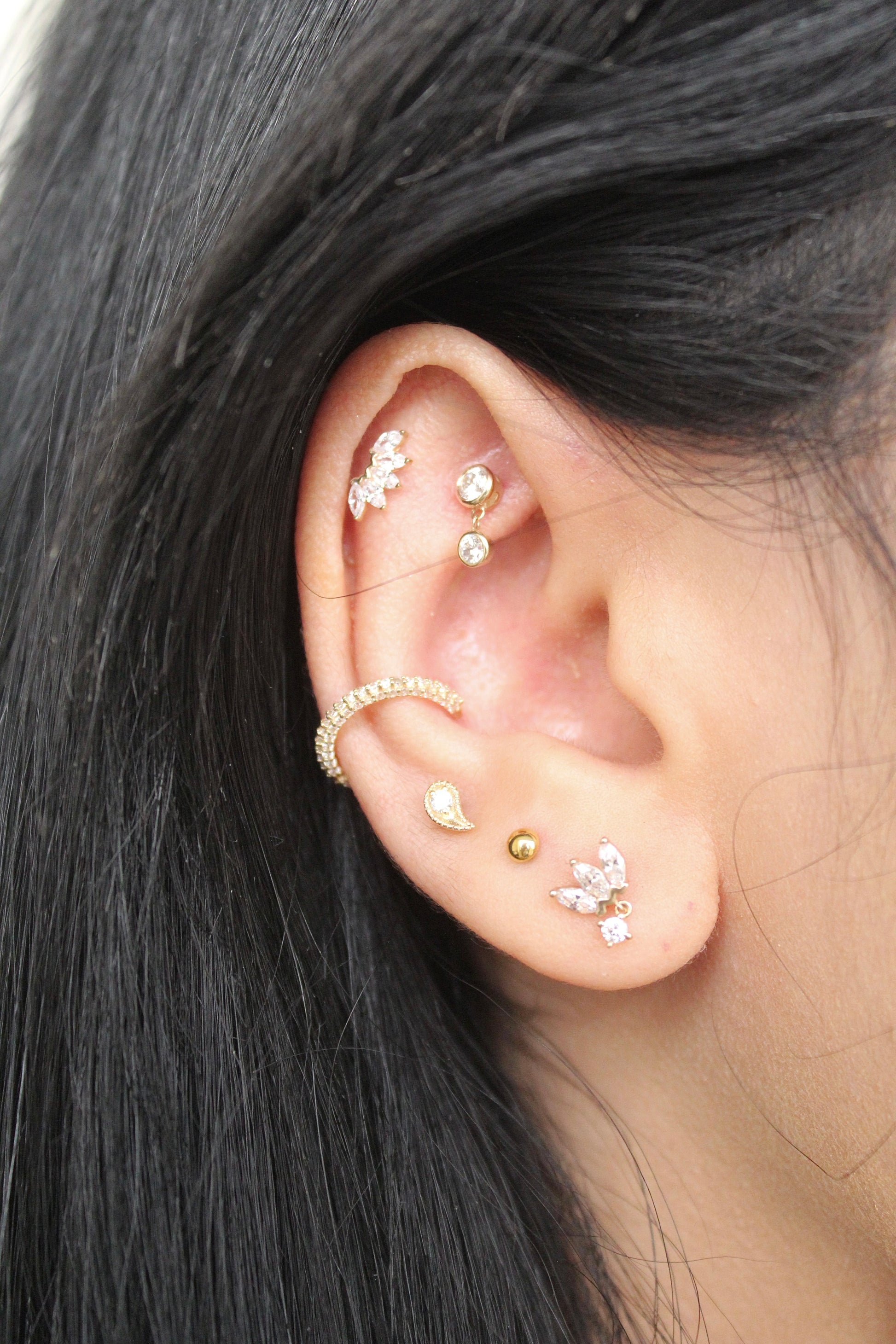 MATERIAL: 14K Solid Gold. BALL SIZE: 4mm STONE: CZ NUMBER OF STONES: 1 EAR PIERCING CLOSURE SYSTEM: Flatback threadless backing, long post (8mm)