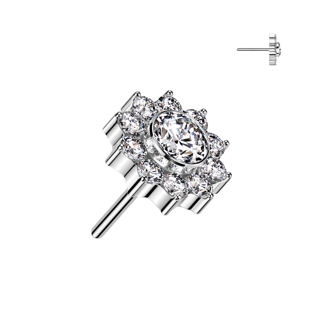 MATERIAL: Titanium; Implant-grade, hypoallergenic. Suitable for those who have skin sensitivities or whose skin is easily reactive to certain metals or nickel. EAR PIERCING CLOSURE SYSTEM: Flatback threadless backing