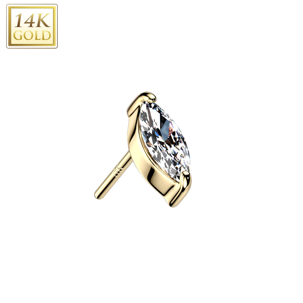 MATERIAL: 14K Solid Gold STONE: CZ BALL SIZE: 5mm EAR PIERCING CLOSURE SYSTEM: Flatback threadless backing, long post (8mm)