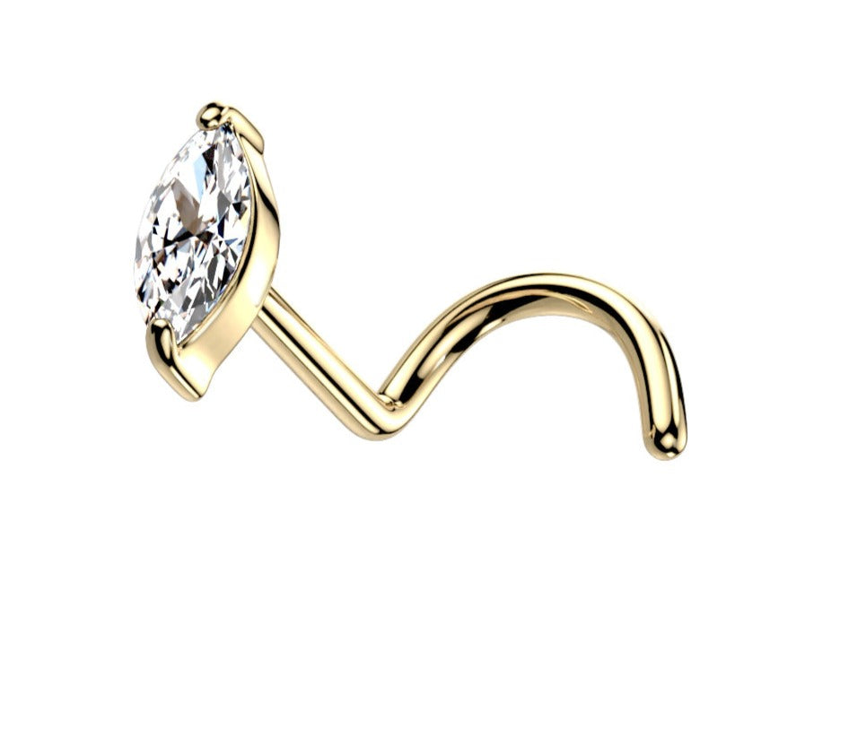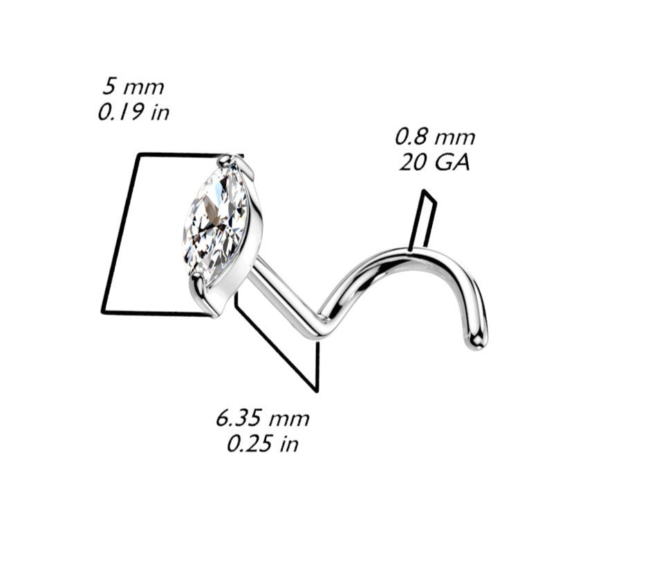 MATERIAL: 14k Solid Gold. BALL SIZE: 5mm DIAMOND: CZ NOSE PIERCING CLOSURE SYSTEM: Cork-screw GUAGE: 20G