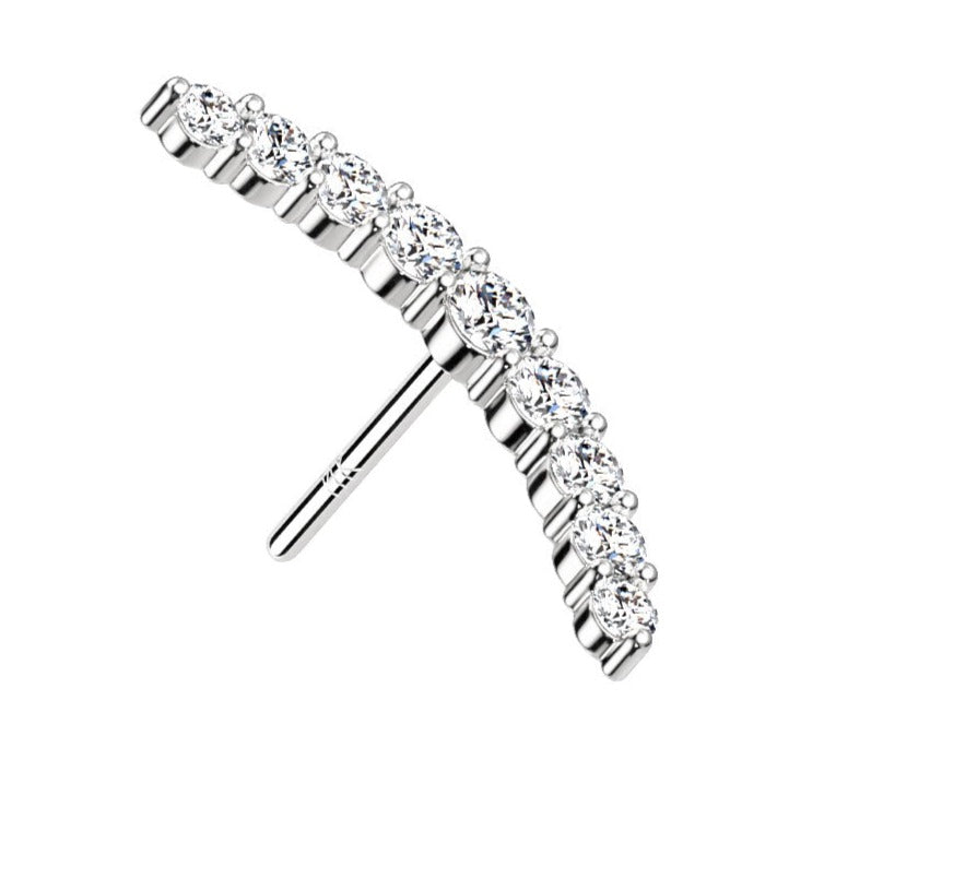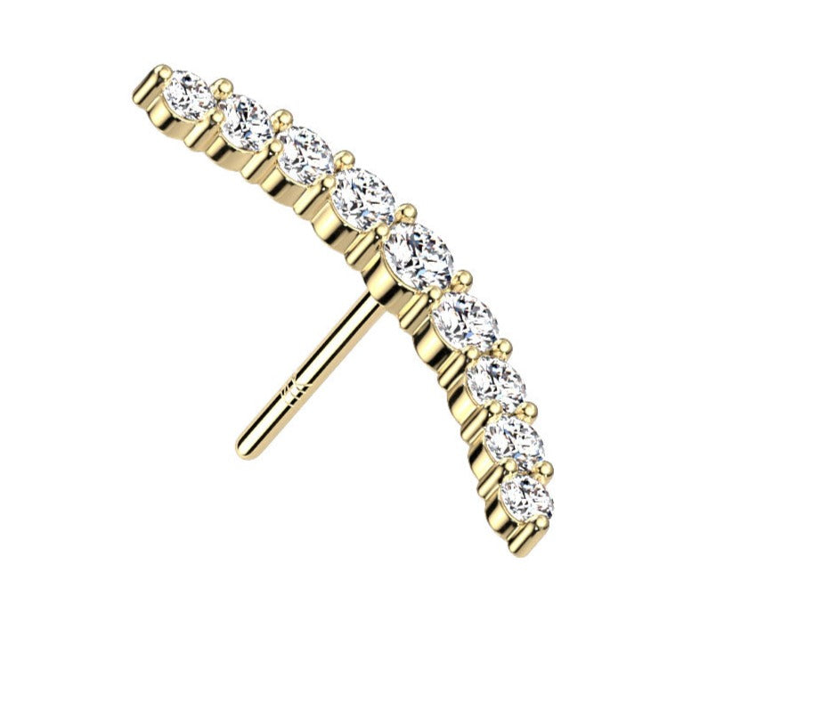 MATERIAL: 14K Solid Gold. BALL SIZE: 11mm STONE: CZ NUMBER OF STONES: 9 EAR PIERCING CLOSURE SYSTEM: Flatback threadless backing, long post (8mm)
