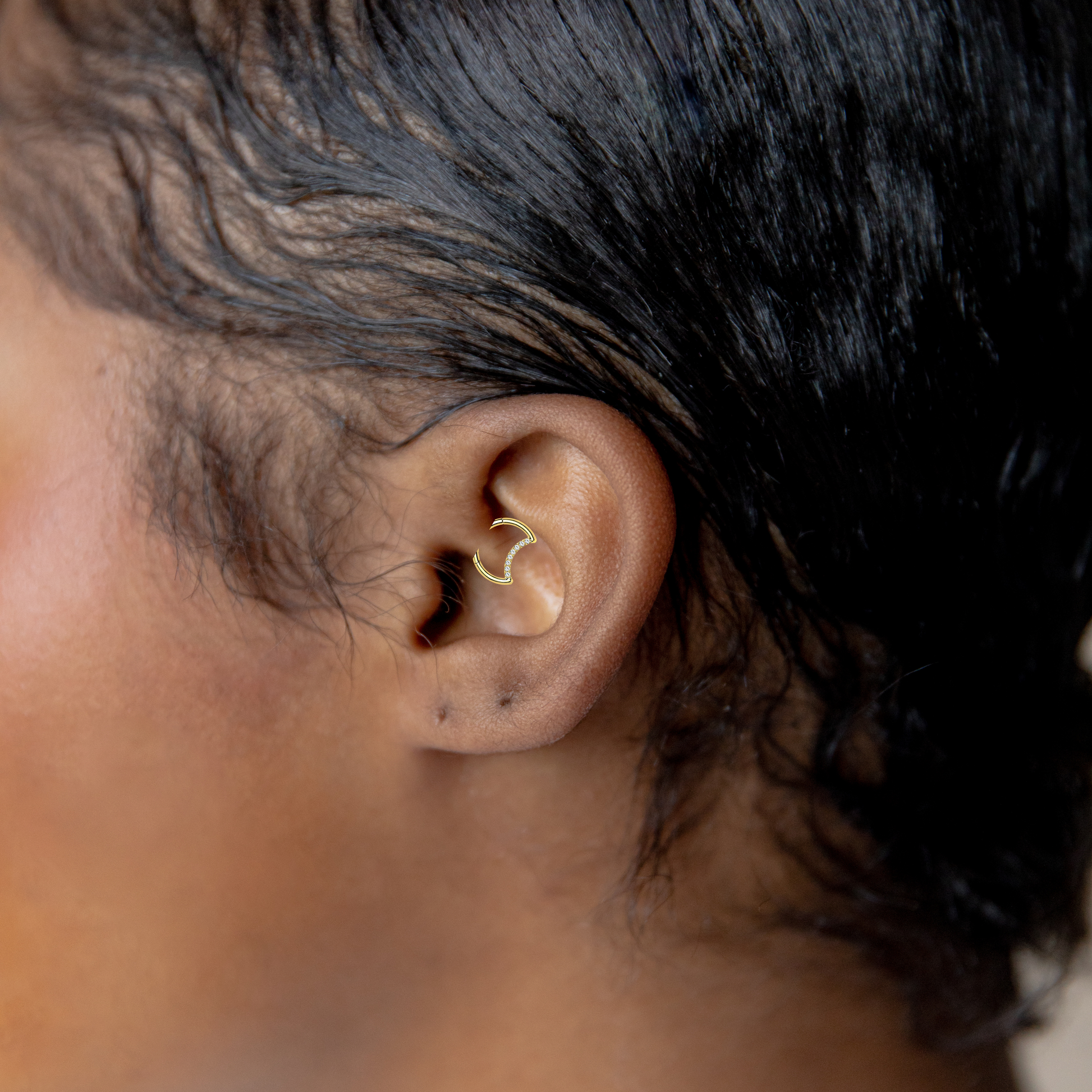 MATERIAL: Titanium; Implant-grade, hypoallergenic. Suitable for those who have skin sensitivities or whose skin is easily reactive to certain metals or nickel. STONE: CZ HOOP THICKNESS: 16G HOOP SIZE: 10mm EAR PIERCING CLOSURE SYSTEM: Seamless hoop