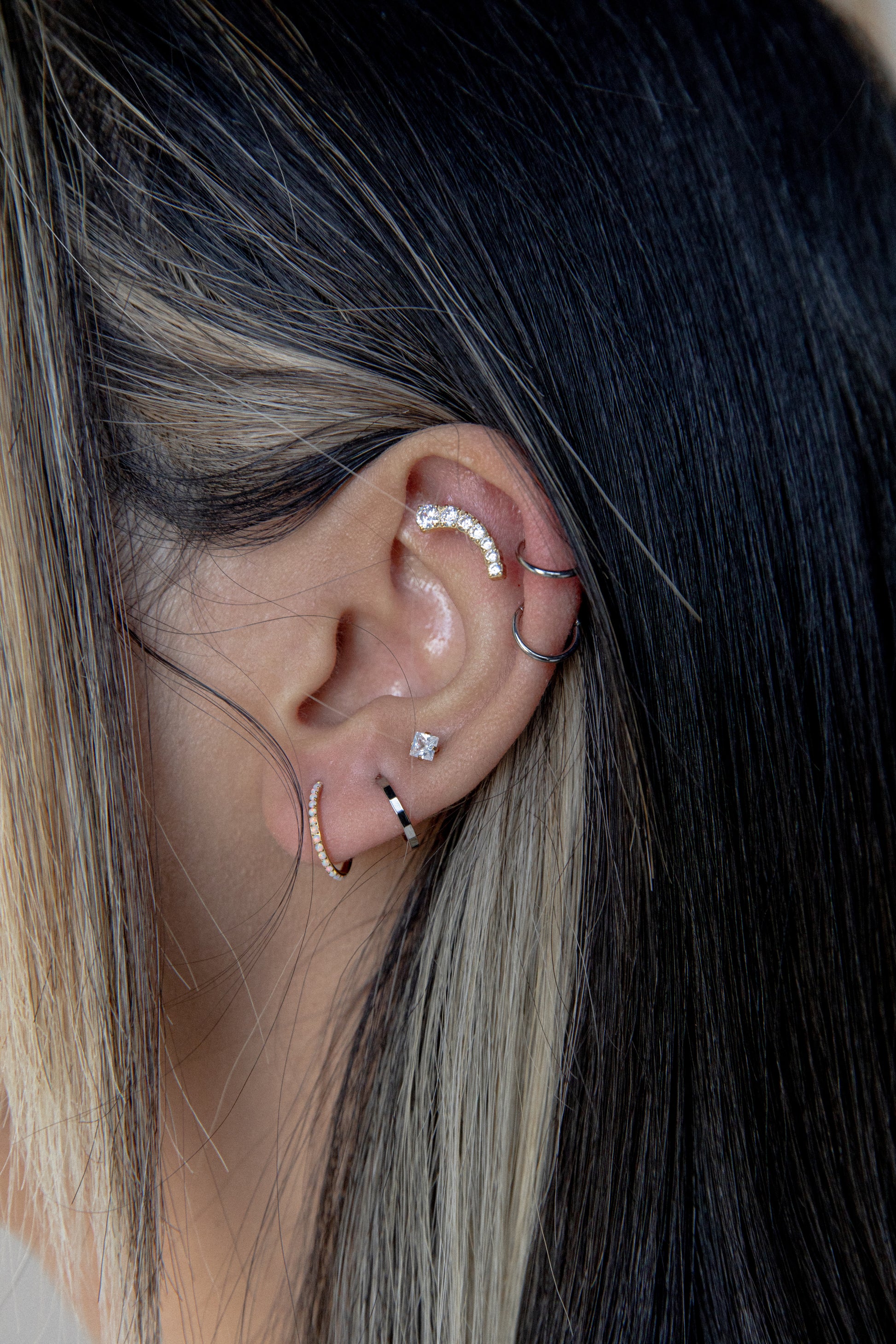 MATERIAL: Titanium; Implant-grade, hypoallergenic. Suitable for those who have skin sensitivities or whose skin is easily reactive to certain metals or nickel. STONE: Pearl HOOP THICKNESS: 16G EAR PIERCING CLOSURE SYSTEM: Seamless hoop