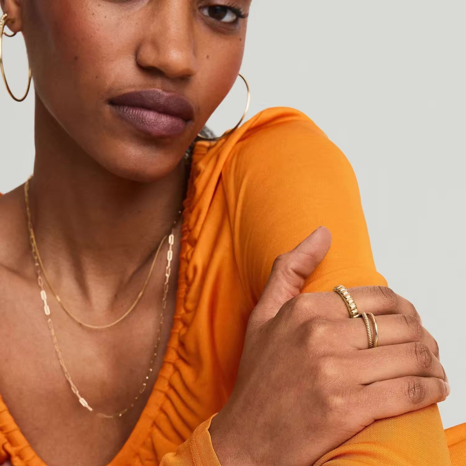 Our gold vermeil styles are made with 18k solid gold (of at least 2.5 microns). Gold-filled jewelry has about 100 times more gold than gold plated jewelry. Unlike gold plated jewelry, the outer surface will not flake, peel or wear off making it the perfect material to be worn everyday.
