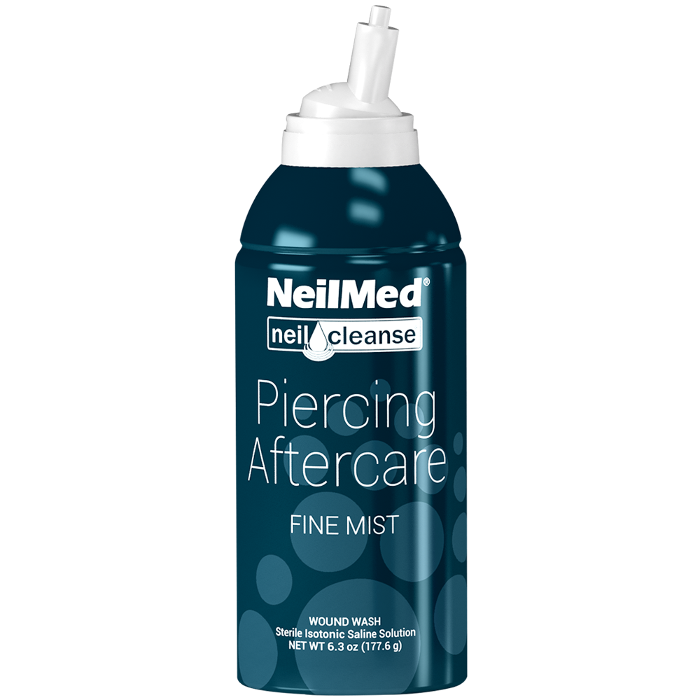 NeilMed Piercing Aftercare allows you to spray a saline solution directly onto the piercing rather than soak it in a saline bath or having to use a cotton ball. This creates a more sterile application process and offers a cleaning solution that makes it easy to clean surface piercings.