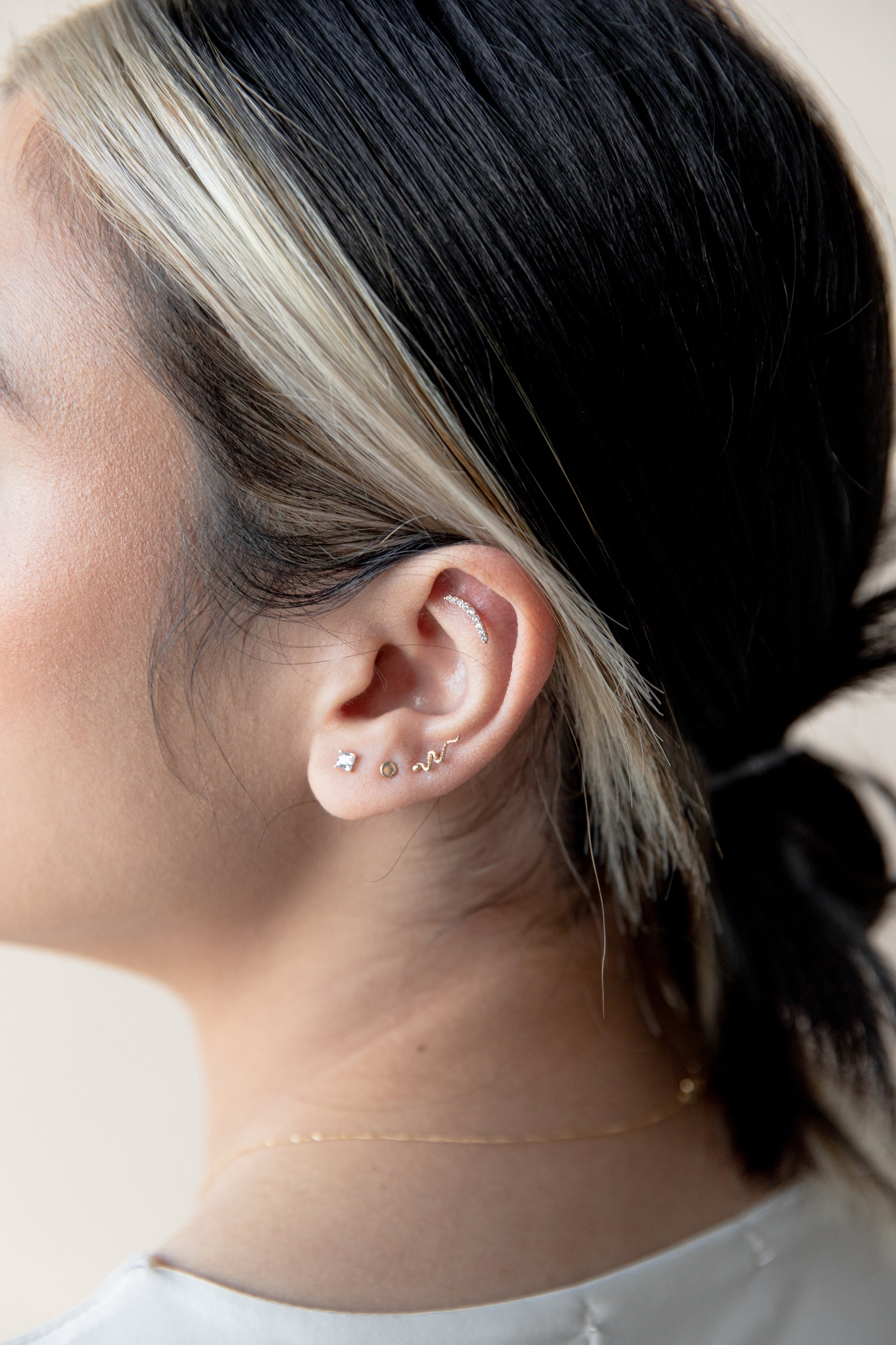 MATERIAL: 14K Solid Gold. BALL SIZE: 10mm EAR PIERCING CLOSURE SYSTEM: Flatback threadless backing, long post (8mm) shorter post (6mm)