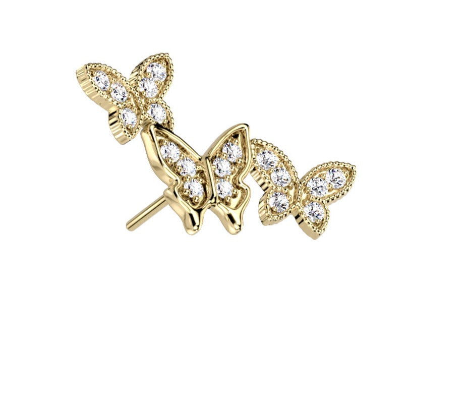MATERIAL: 14k Solid Gold. BALL SIZE: 13mm DIAMOND: CZ EAR PIERCING CLOSURE SYSTEM: Flatback threadless backing, long post (8mm)