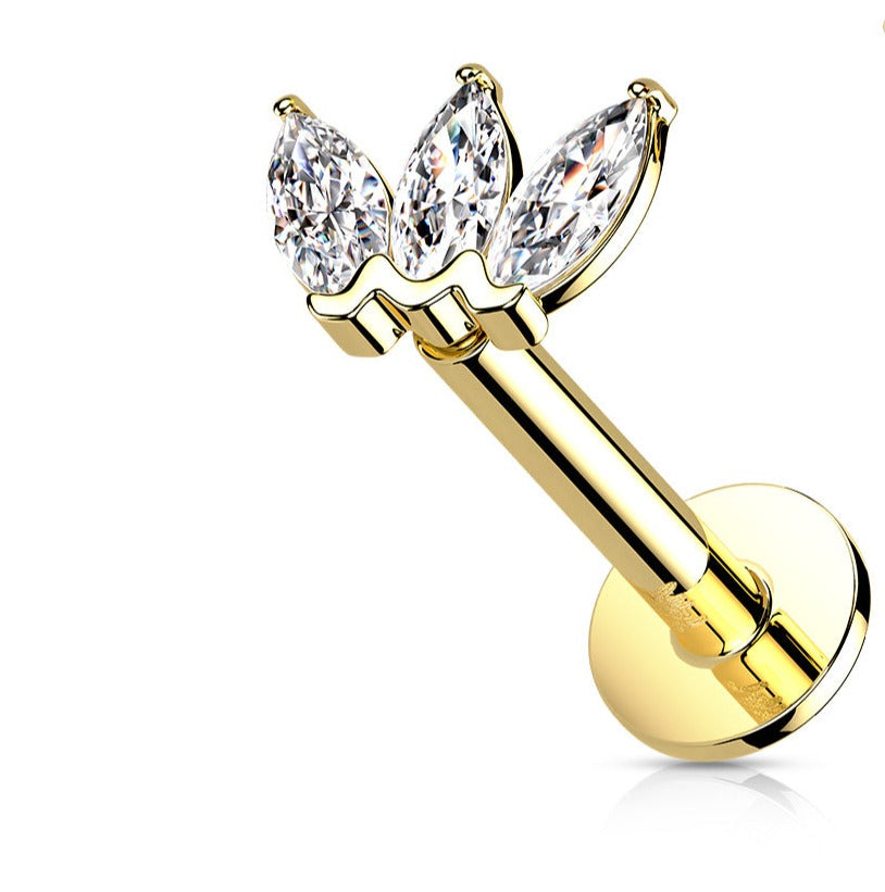 MATERIAL: 14k Solid Gold. BALL SIZE: 5mm DIAMOND: CZ EAR PIERCING CLOSURE SYSTEM: Flatback threadless backing, long post (8mm) shorter post (6mm)
